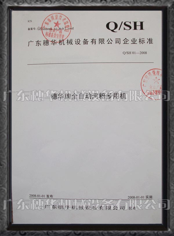 機(jī)械產(chǎn)品企業(yè)標(biāo)準(zhǔn)證書