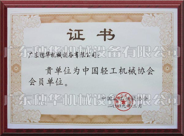 我國輕工機(jī)械協(xié)會會員證書